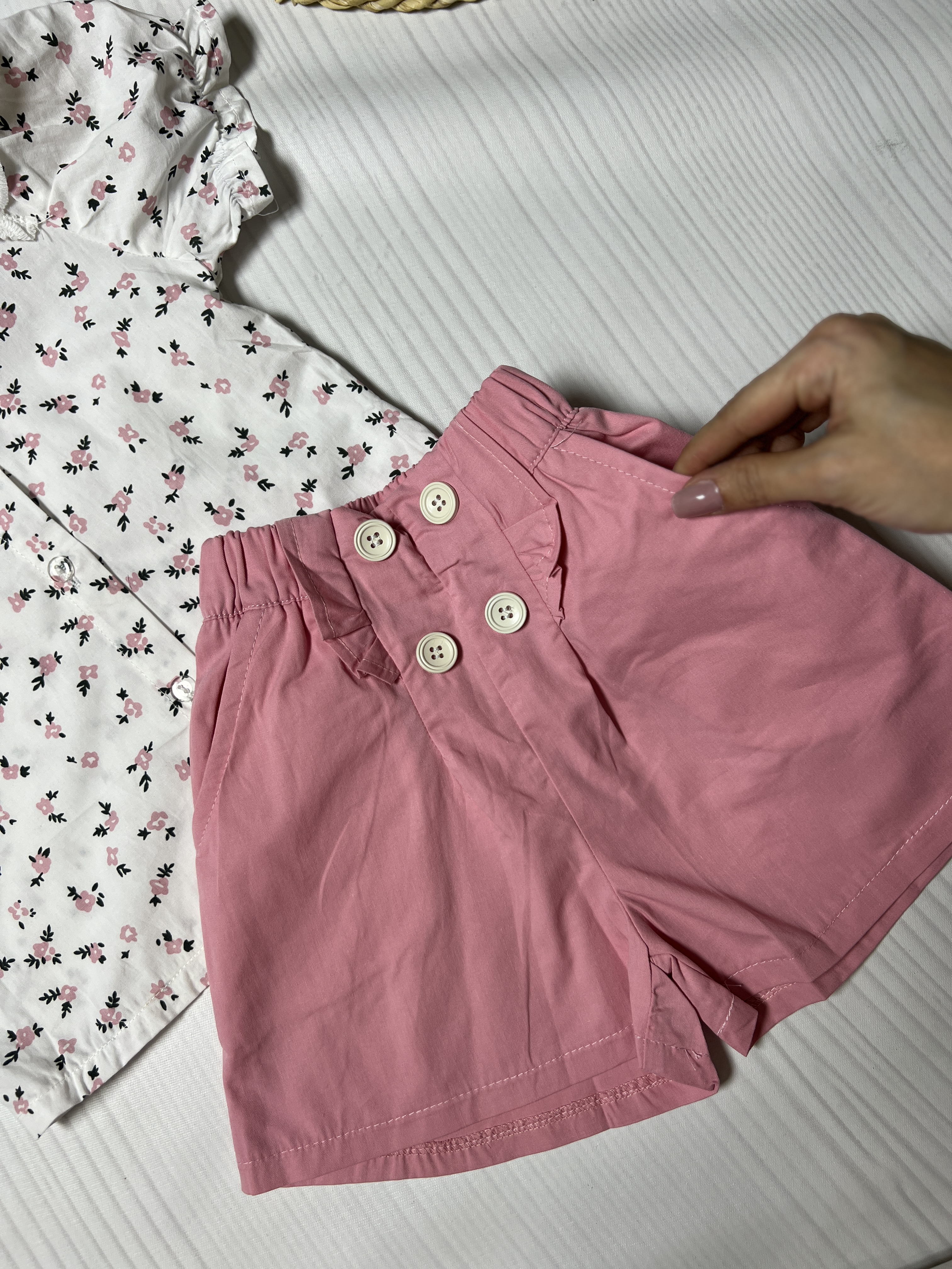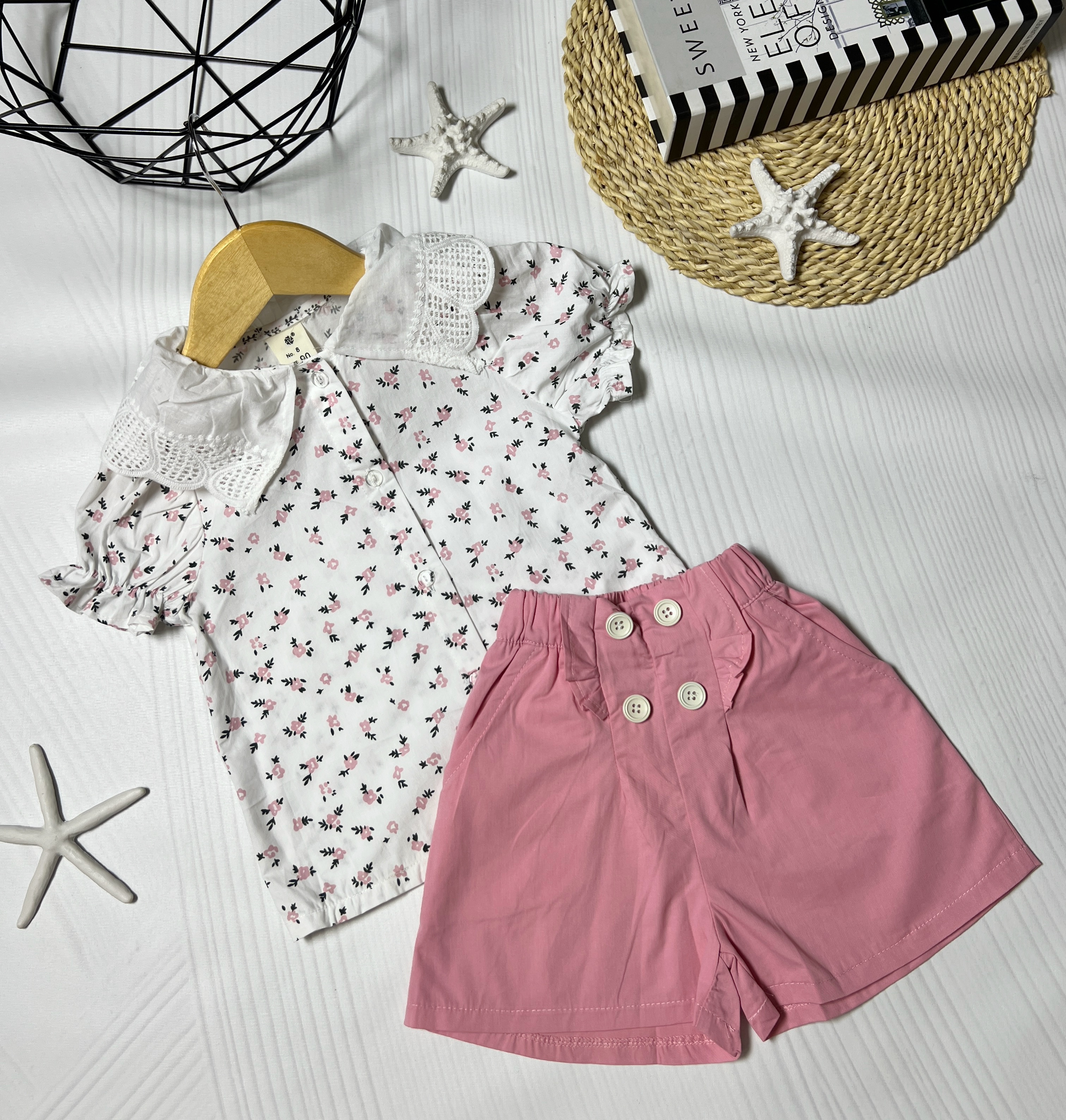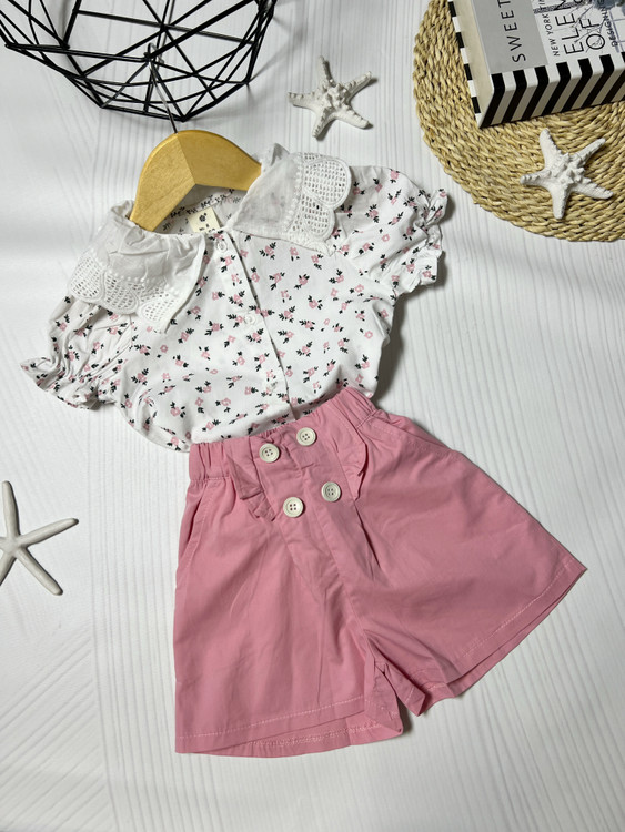ست وارداتی کودک دخترونه فانتزی شومیز و شلوارک نخی کیفیت بالا ۲تا۷سال کد۲۲۴