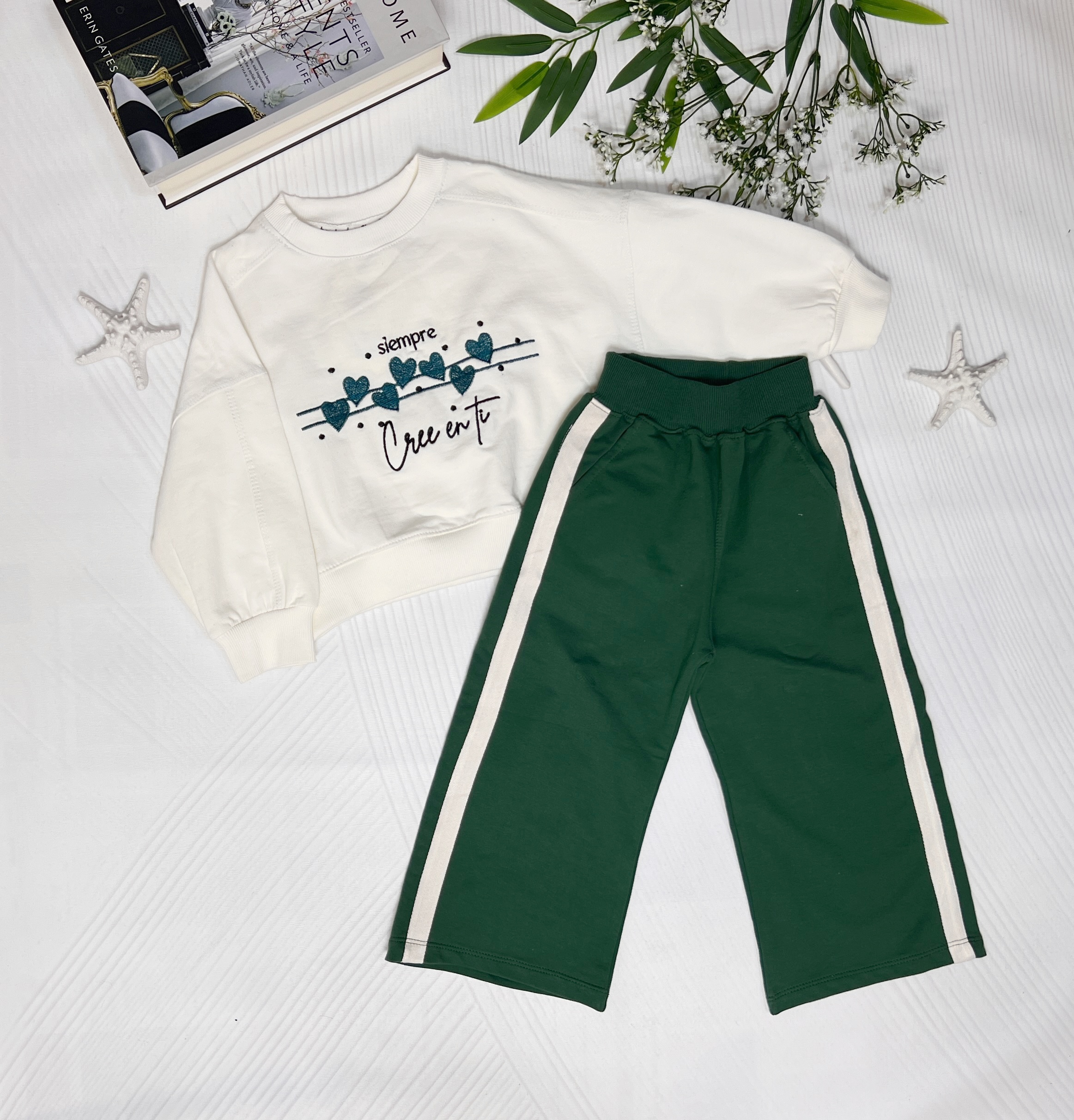رنگ دورس سفید شلوار سبز و خردلی
