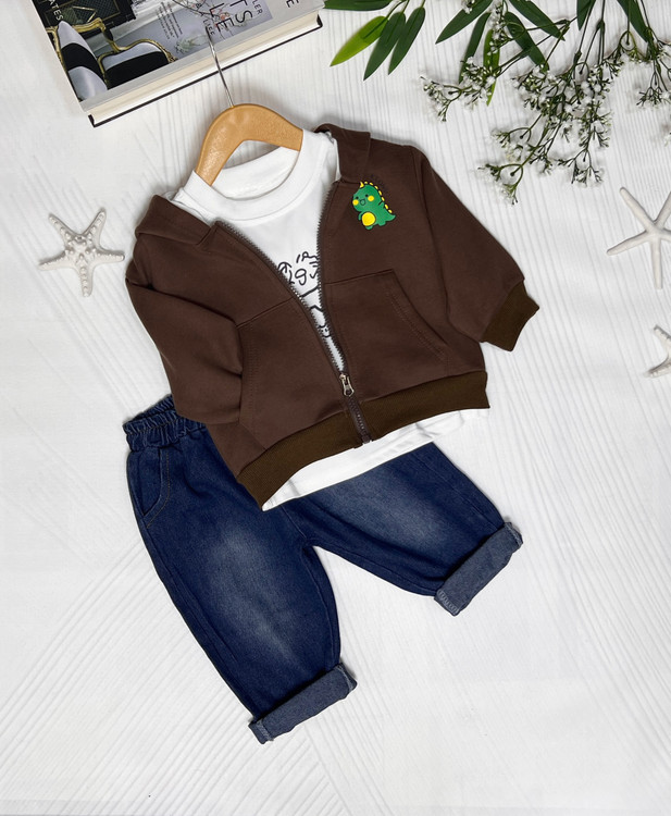سه تیکه نقلی اسپرت وارداتی سویشرت دورس شلوارجین ۱تا۴سال کد۱۸۱