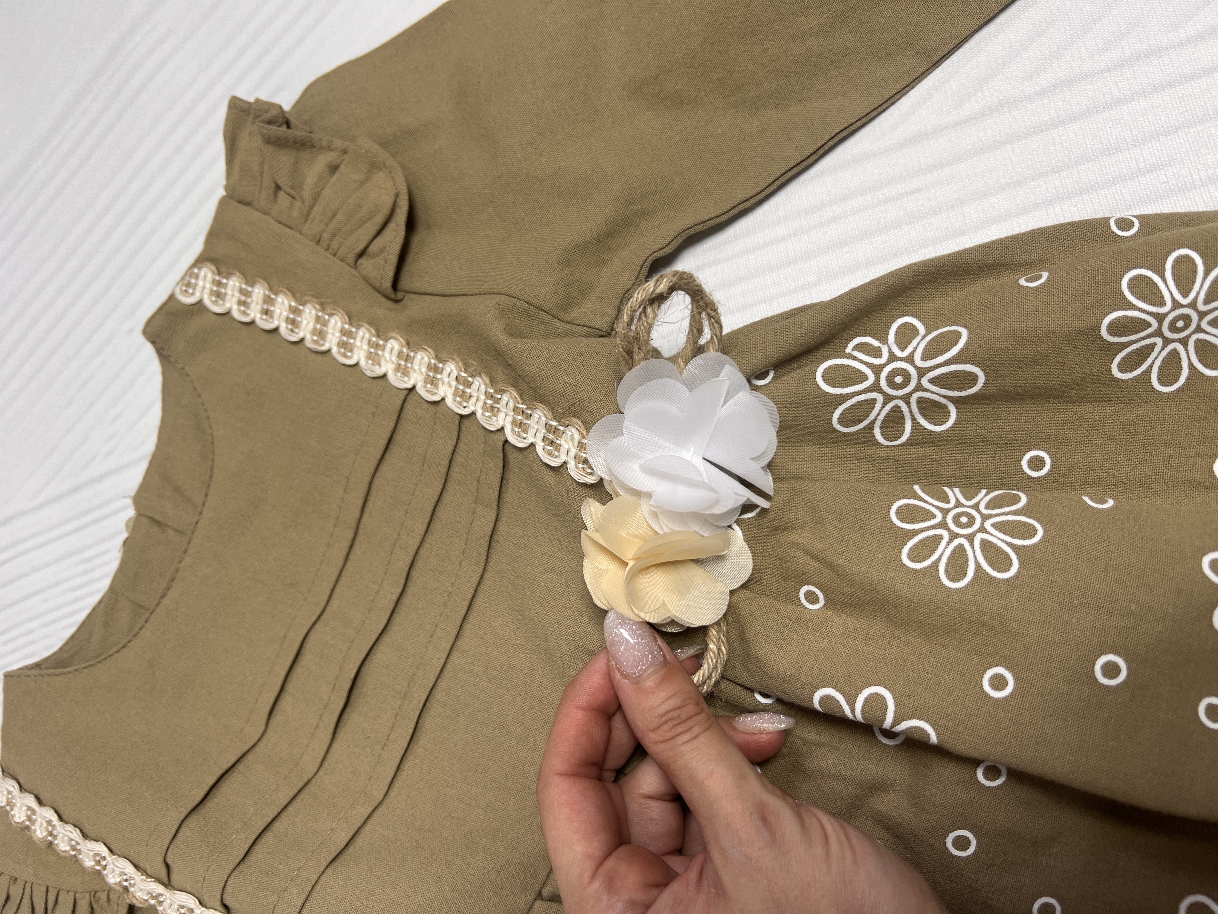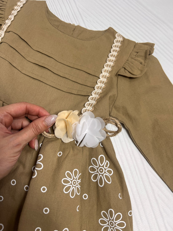 پیراهن دخترونه فانتزی آستین بلند نخ کتان