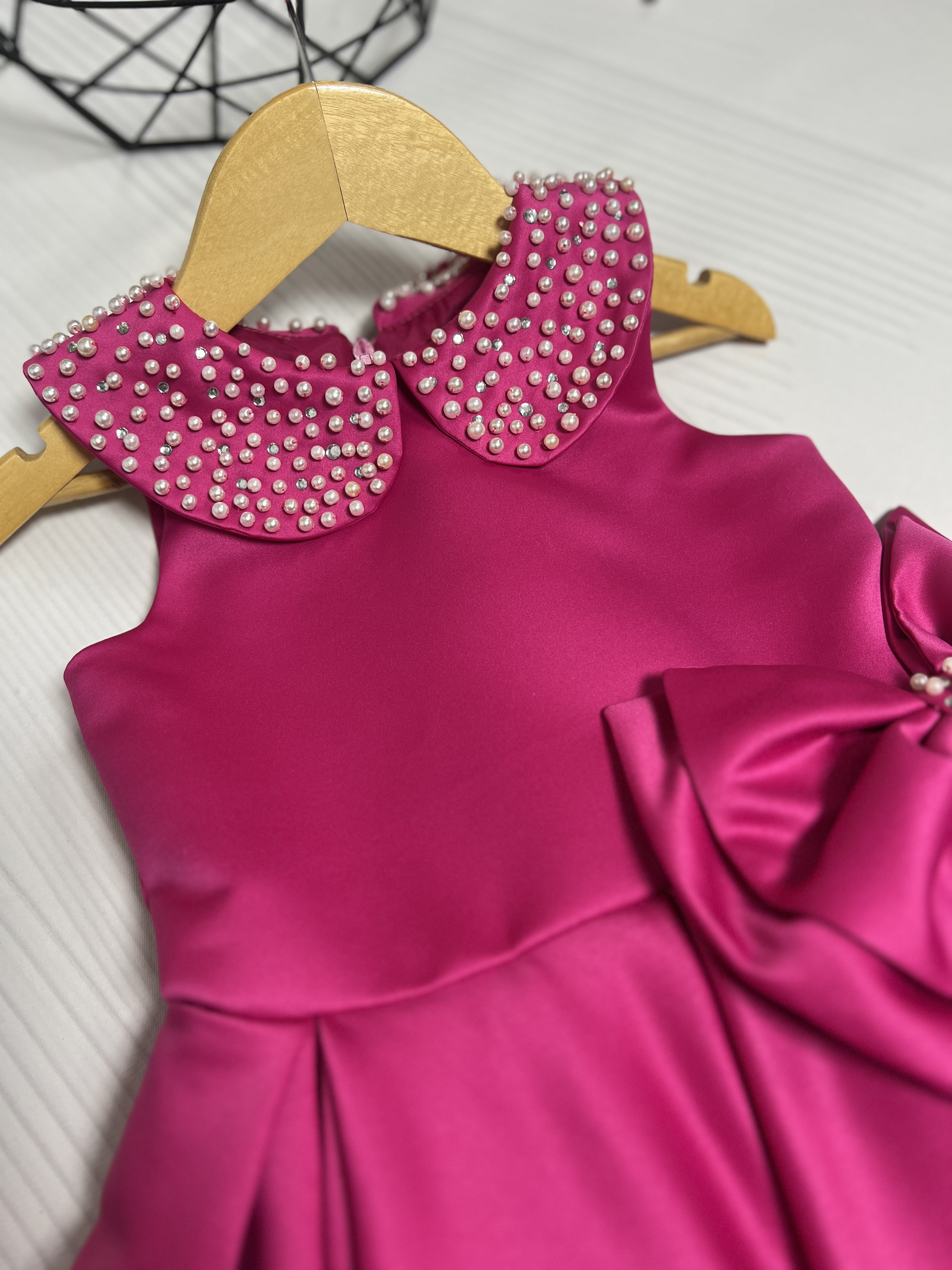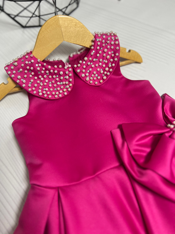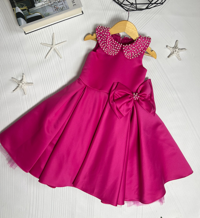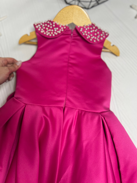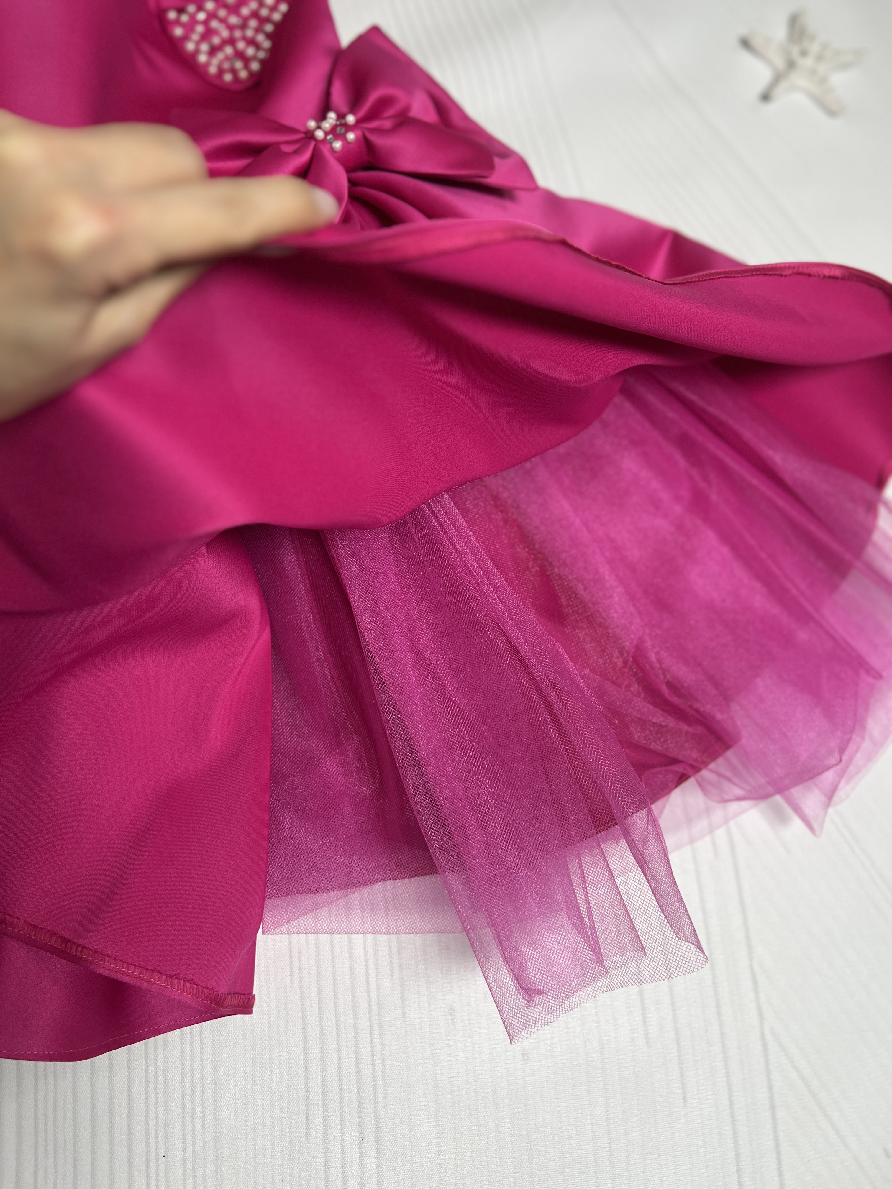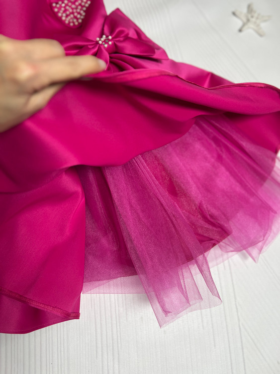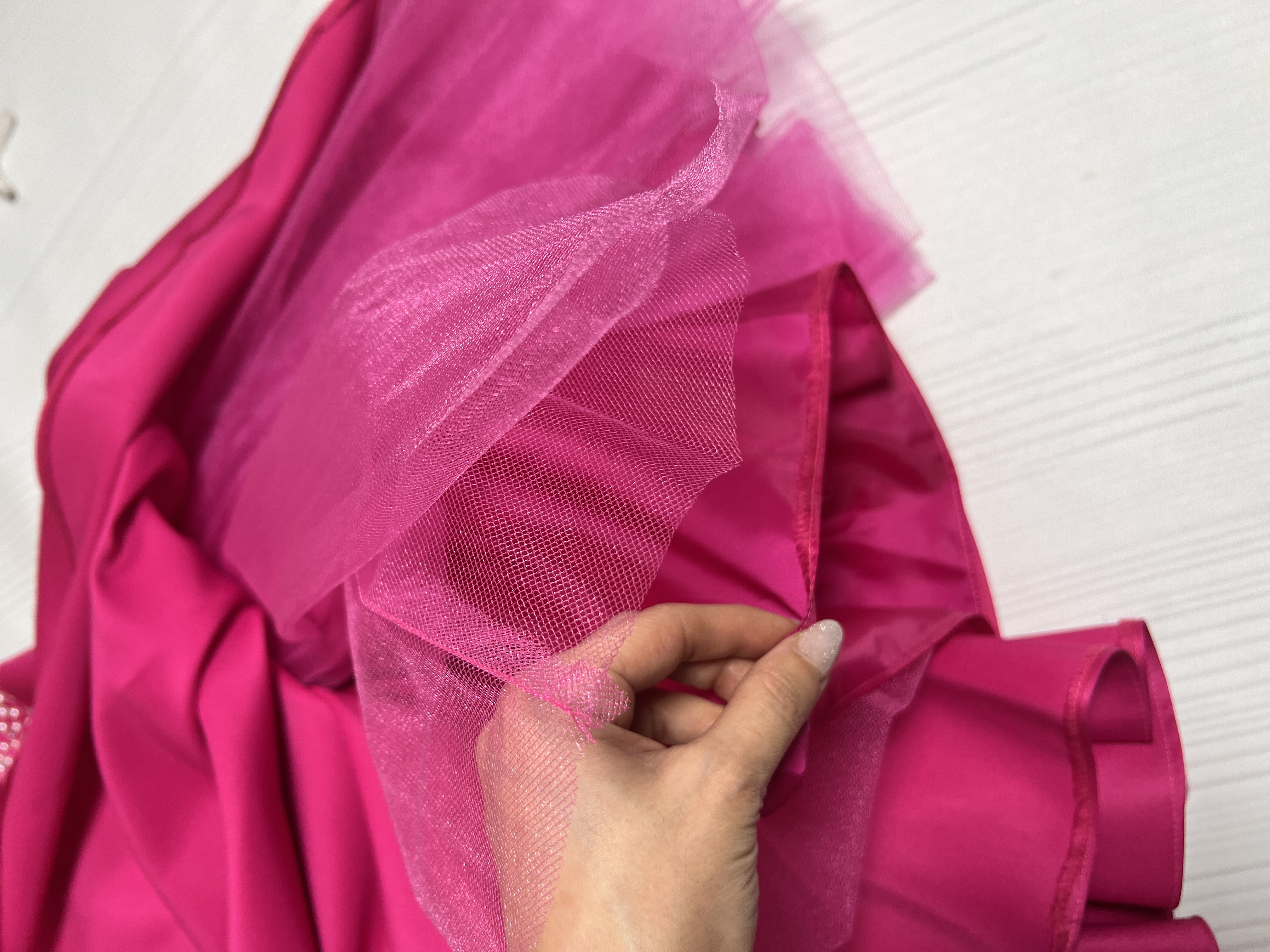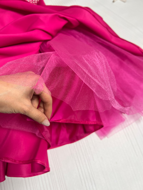 پیراهن ساختن مزونی مجلسی رنگ سرخابی مرواریدی و توری