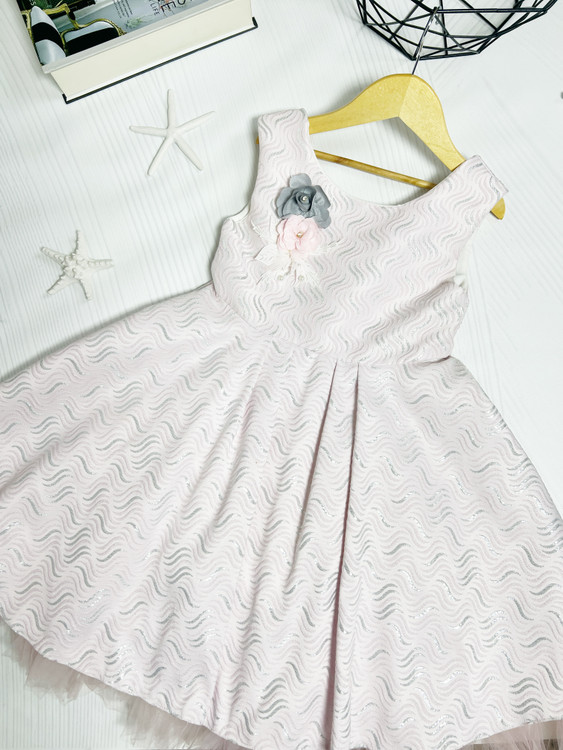 پیراهن دخترونه مزونی مجلسی صورتی پارچه ژاکارد کیفیت بالا