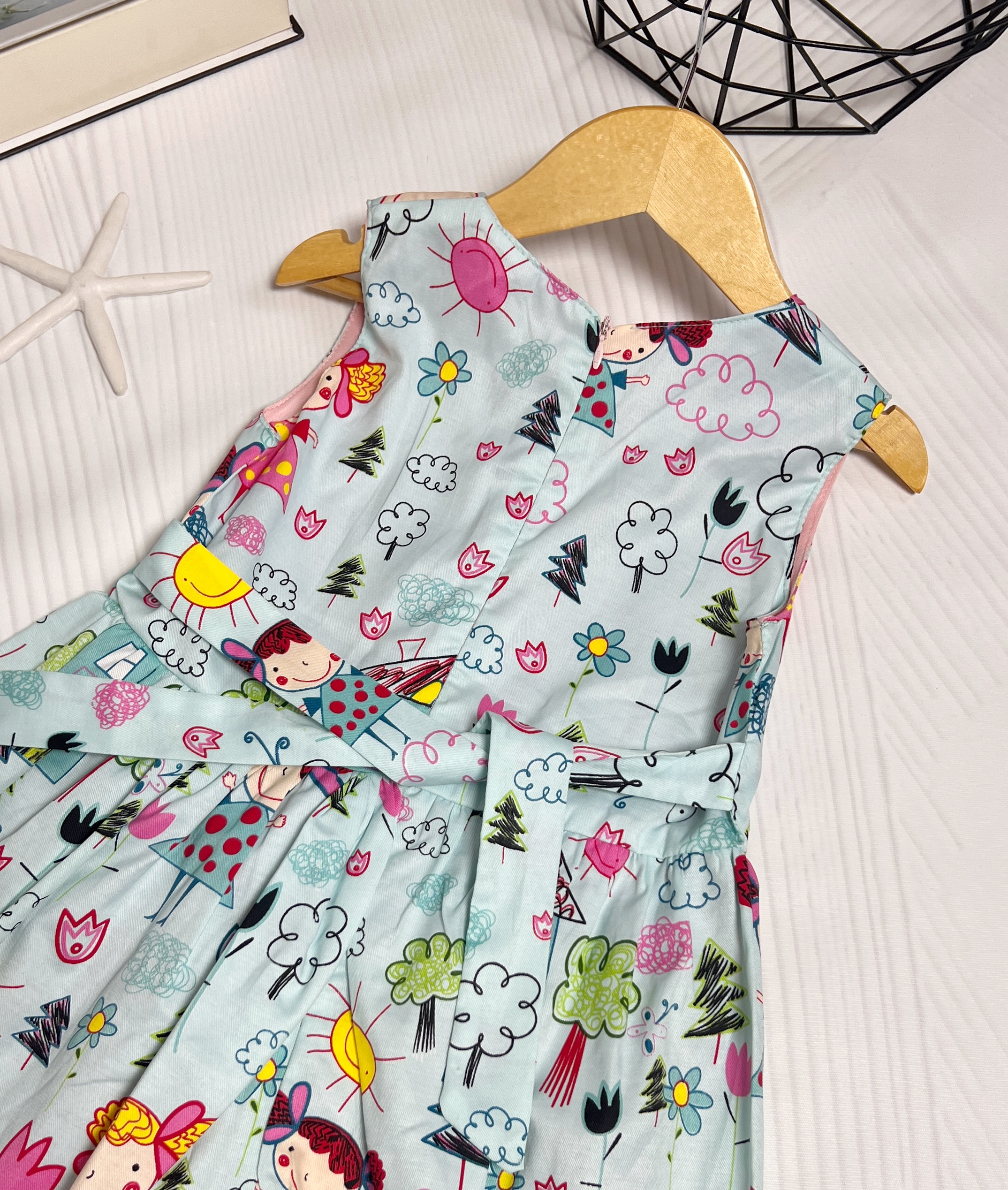پیراهن دخترونه فانتزی رنگ آبی آسمانی وارداتی نخی کیفیت بالا فقط یک سایز موجوده قد پیراهن ۷۵ عرض سینه ۳۱