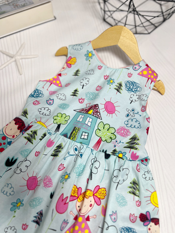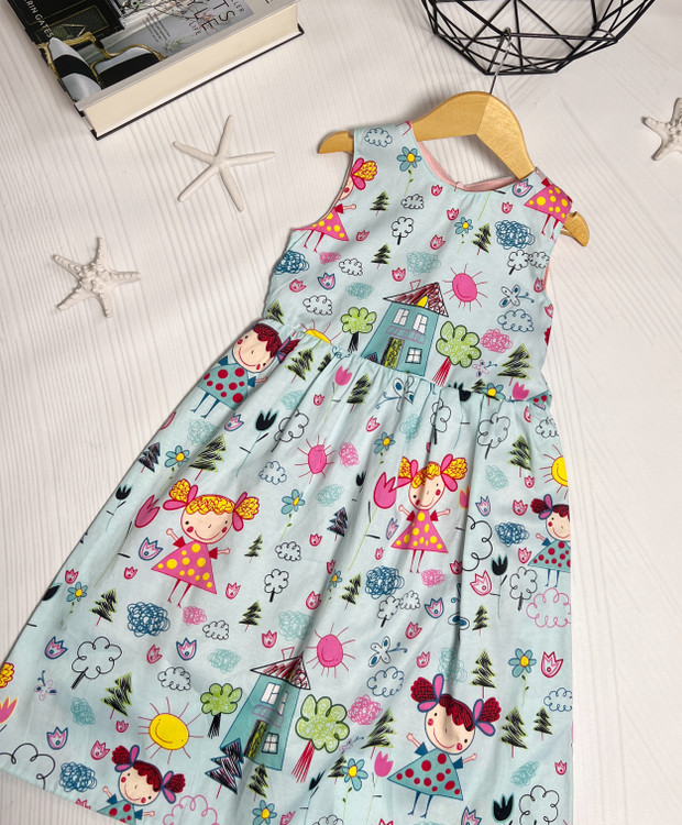 پیراهن دخترونه فانتزی وارداتی کیفیت بالا نخی رنگ آبی