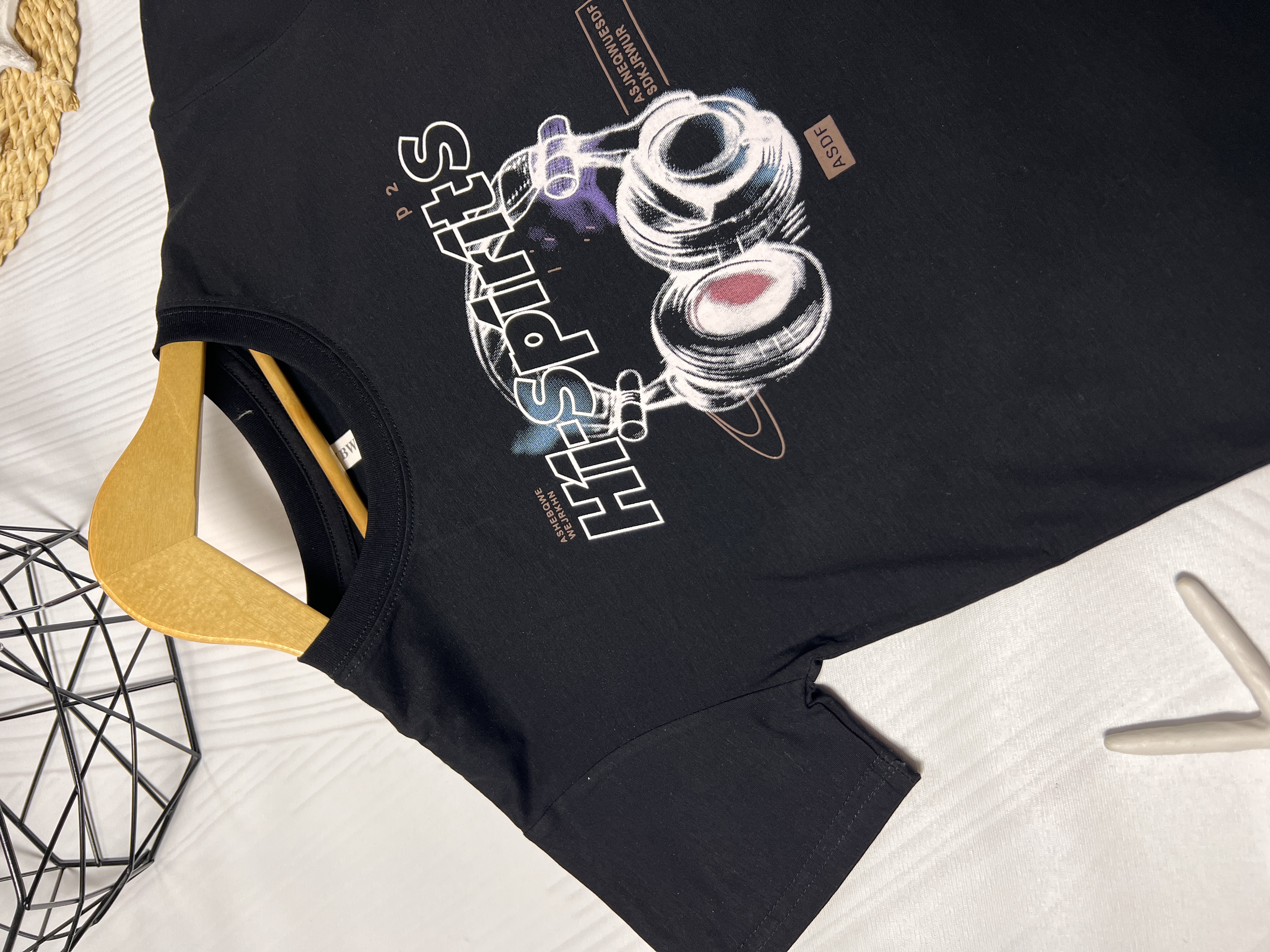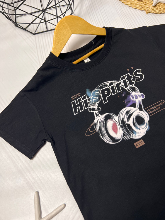 تیشرت کودک وارداتی آستین کوتاه هدفونی نخ پنبه کیفیت بالا مشکی کد۲۰۵